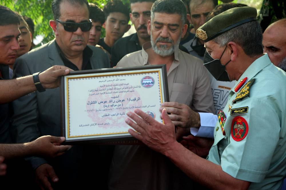 شيعت القيادة العامة للقوات المسلحة الأردنية - الجيش العربي، اليوم الإثنين، جثمان شهيد الواجب الرقيب/1 عوض رائد عوض الشلول إلى مثواه الأخير بعد الصلاة عليه في مسجد فاطمة الزهراء/ دوقرة في محافظة إربد، والذي وافته المنية يوم الإثنين الماضي إثر نوبة قلبية في جمهورية مالي ضمن قوات حفظ السلام الدولية الذي يشارك به الأردن، بحضور المساعد للعمليات والتدريب العميد الركن عبدالله شديفات.