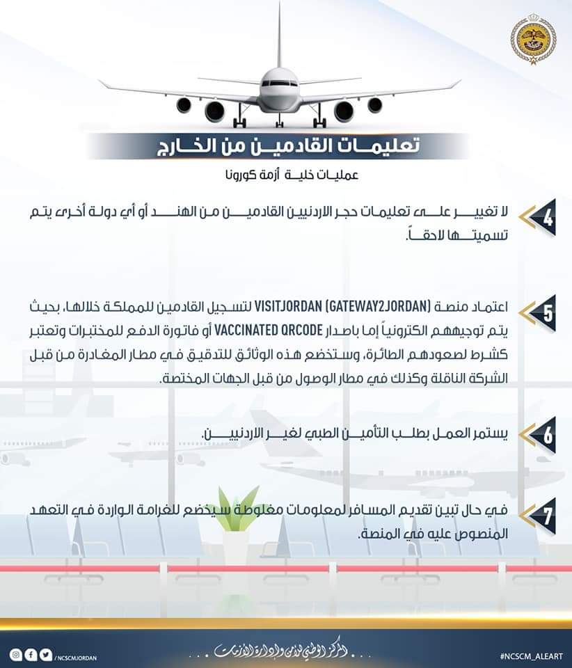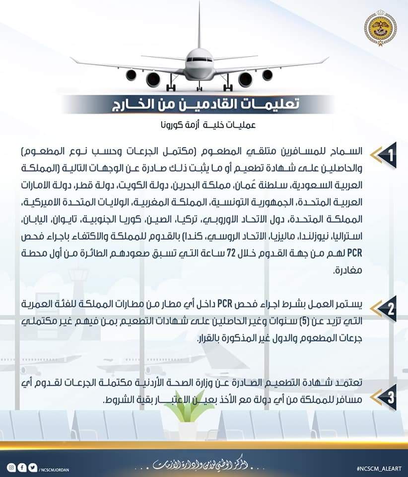 التعليمات المحدثة للمسافرين القادمين والمغادرين للمملكة الأردنية الهاشمية.