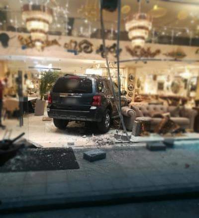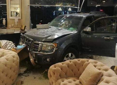 مركبة تقتحم محل اثاث بخلدا
