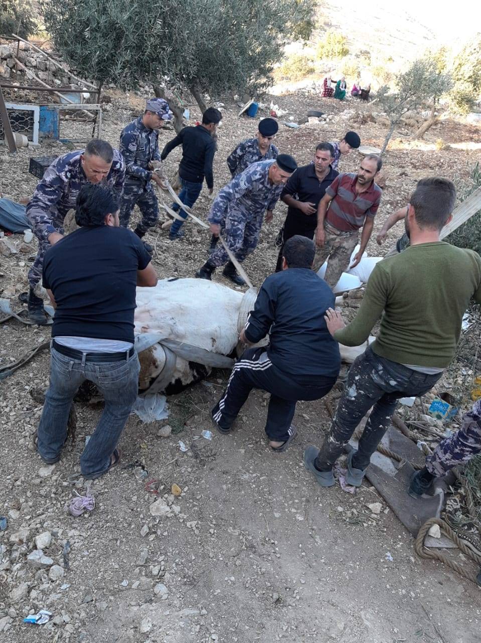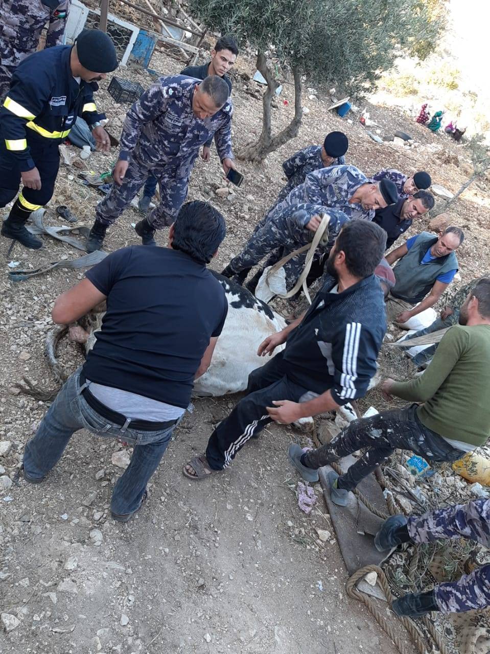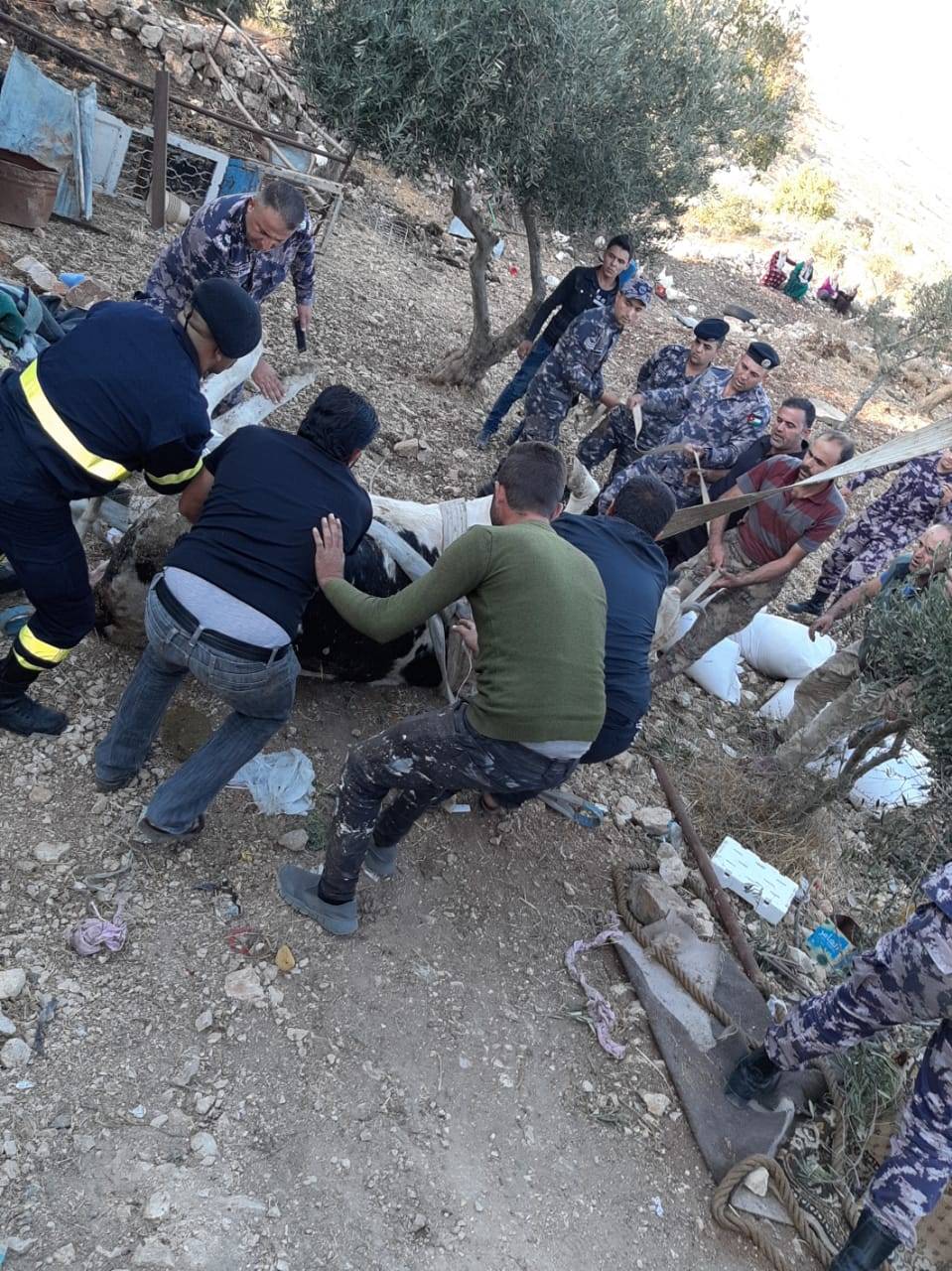 إنقاذ بقرة سقطت داخل حفرة بعجلون