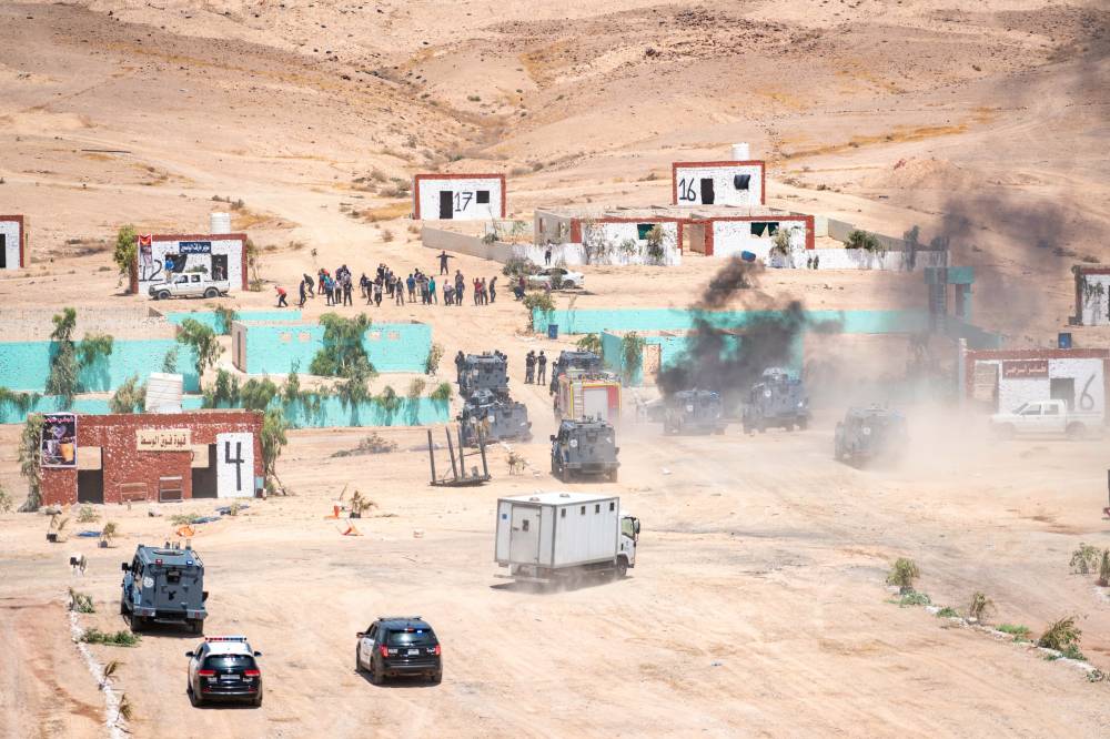 تابع جلالة الملك عبدالله الثاني، القائد الأعلى للقوات المسلحة، تمرينا أمنيا نفذته مديرية الأمن العام، من خلال قيادة قوات الدرك تساندها وحدات شرطية، وكوادر من الدفاع المدني، في مركز الدرك الأردني الإقليمي المتميز لتدريب حفظ النظام.