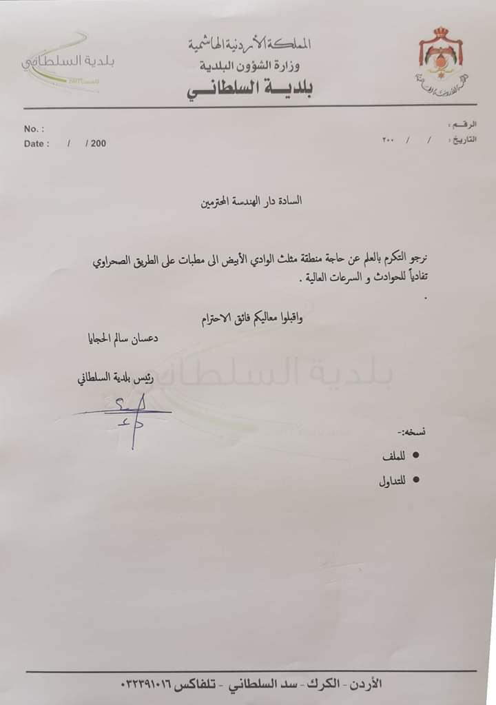 بلدية السلطاني تطلب مطبات(وثيقة)