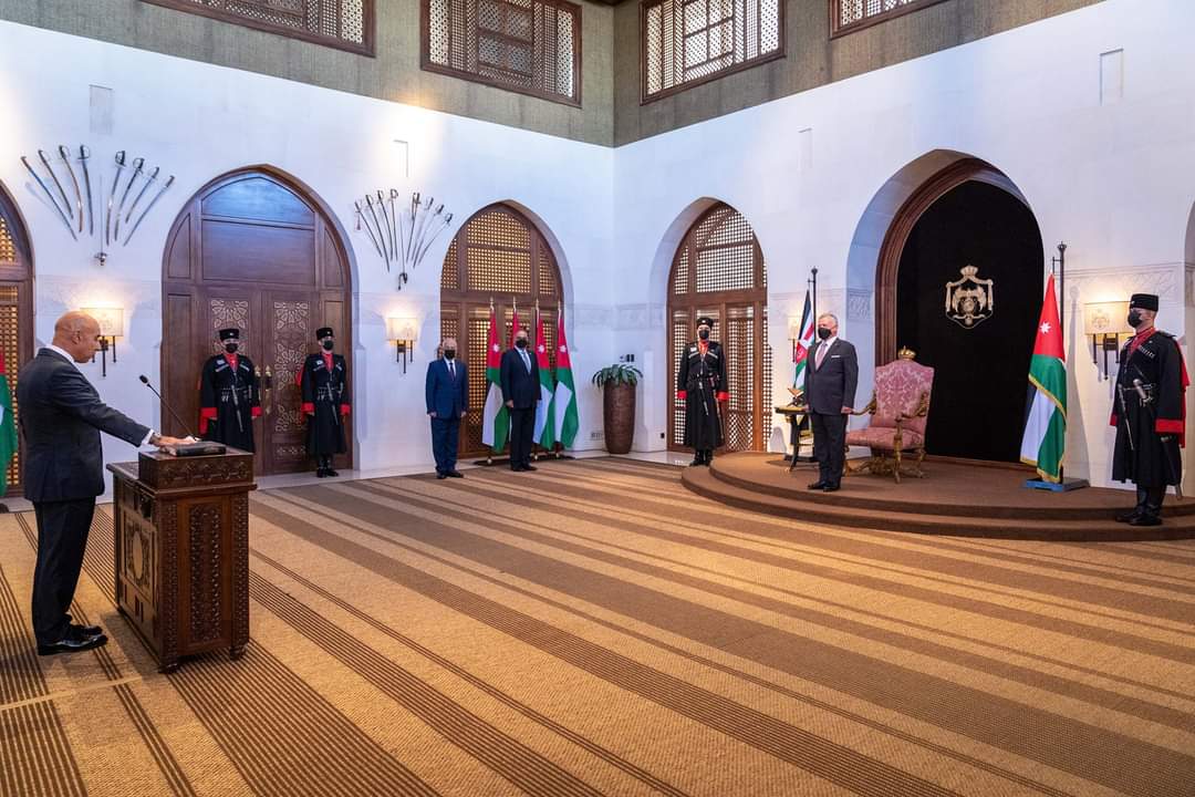 وحضر أداء اليمين الدستورية رئيس الوزراء الدكتور بشر الخصاونة، ورئيس الديوان الملكي الهاشمي يوسف حسن العيسوي.