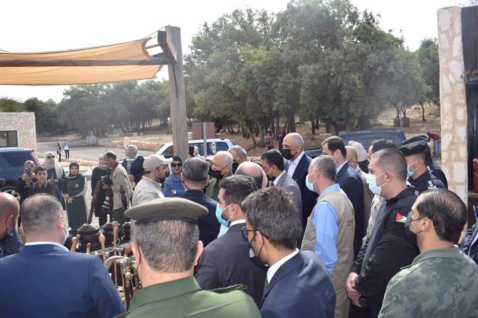 ضمن إجراءات السلامة العامة المُتبعة للوقاية من جائحة كورونا ، رافق أعضاء من البرنامج الوطني الشبابي " أبناء المملكة "، معالي رئيس الديوان الملكي الهاشمي العامر يوسف العيسوي ، في جولته في محافظتي عجلون وإربد ، افتتح خلالها مشاريع تنموية وخدماتية وسياحية ضمن المبادرات الملكية ، وتفقد عدد من المواقع السياحية.