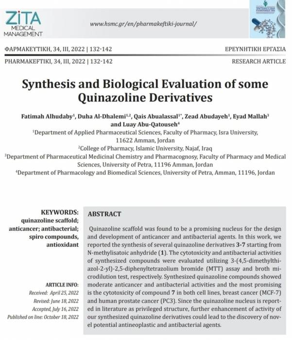 فريق بحث أردني يتوصّل إلى تركيبة تزيد فعالية علاج كيميائي للسرطان وتقلل من سُمِّيَّتِه