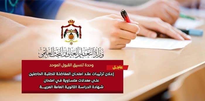 امتحان المفاضلة المقرر للطلبة الأردنيين الحاصلين على معدلات متساوية