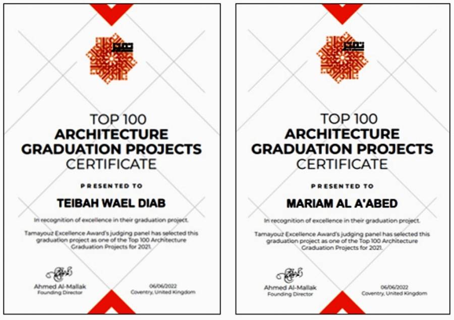 مشروعا تخرّج لطلبة هندسة العمارة "عمان الاهلية" ضمن قائمة أفضل 100 مشروع على مستوى العالم