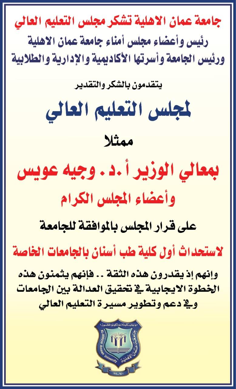 جامعة عمان الاهلية تشكر مجلس التعليم العالي2021-11-28 -