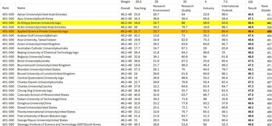 • جامعة عمان الاهلية تعرض جدول تصنيف التايمز