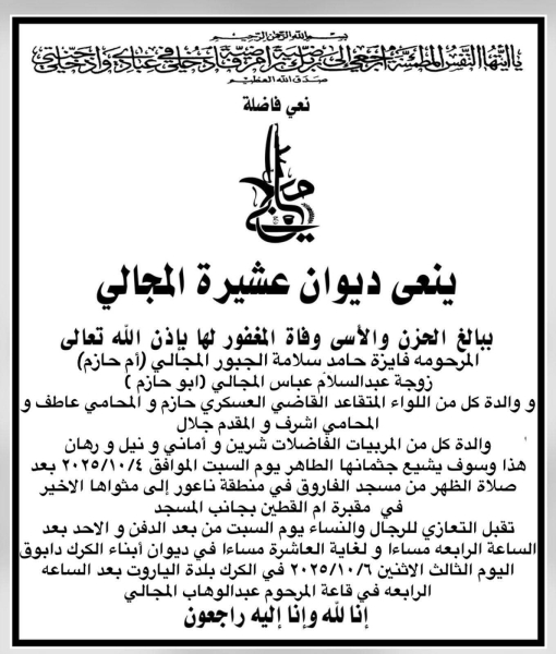 ام حازم زوجة عبدالسلام المجالي في ذمة الله2025-10-03 -