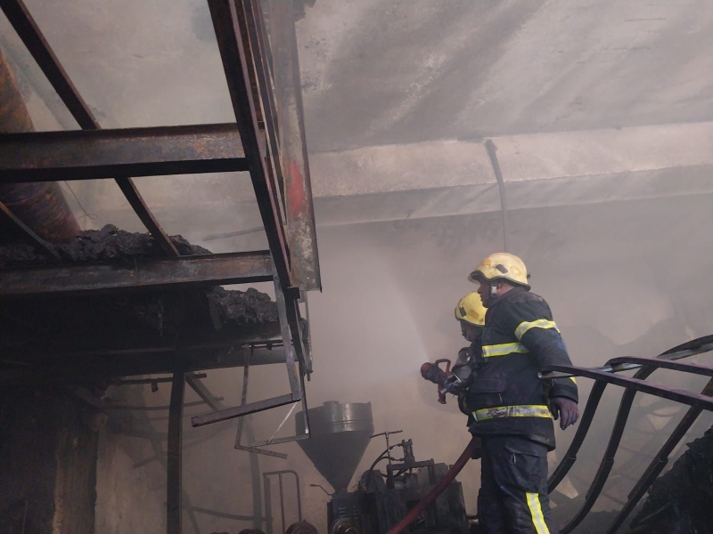 • اخماد حريق بساحة خارجية تحتوي على مواد بلاستيكية في إربد