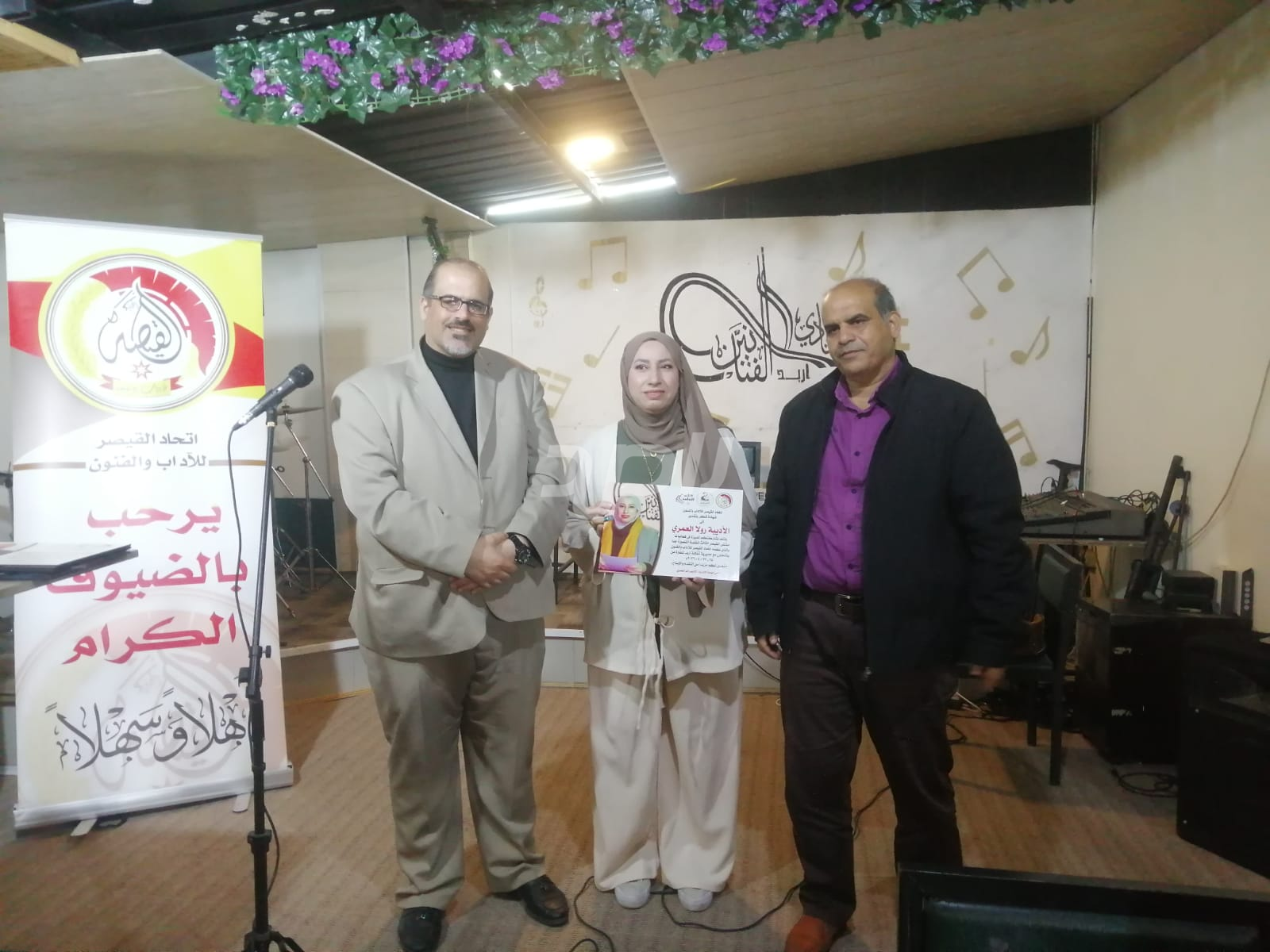 وسط حضور نوعي من الأدباء والمثقفين في محافظة إربد رعى مدير ثقافة إربد الدكتور سلطان الزغول الأمسية الختامية لملتقى القيصر الثالث للقصة القصيرة جدا والذي نظمه اتحاد القيصر للآداب والفنون برئاسة الأديب رائد العمري بالتعاون مع مديرية ثقافة إربد في نادي الفنانين إربد وقد شارك في هذه الأمسية كل من القاصين:" د. تيسير المشارقة، د. تيسير السعيدين ، رولا العمري، محمد علي الصمادي، نسيبة علاونة ، وليد فاضل جرادات ، رائد محمود العمري"