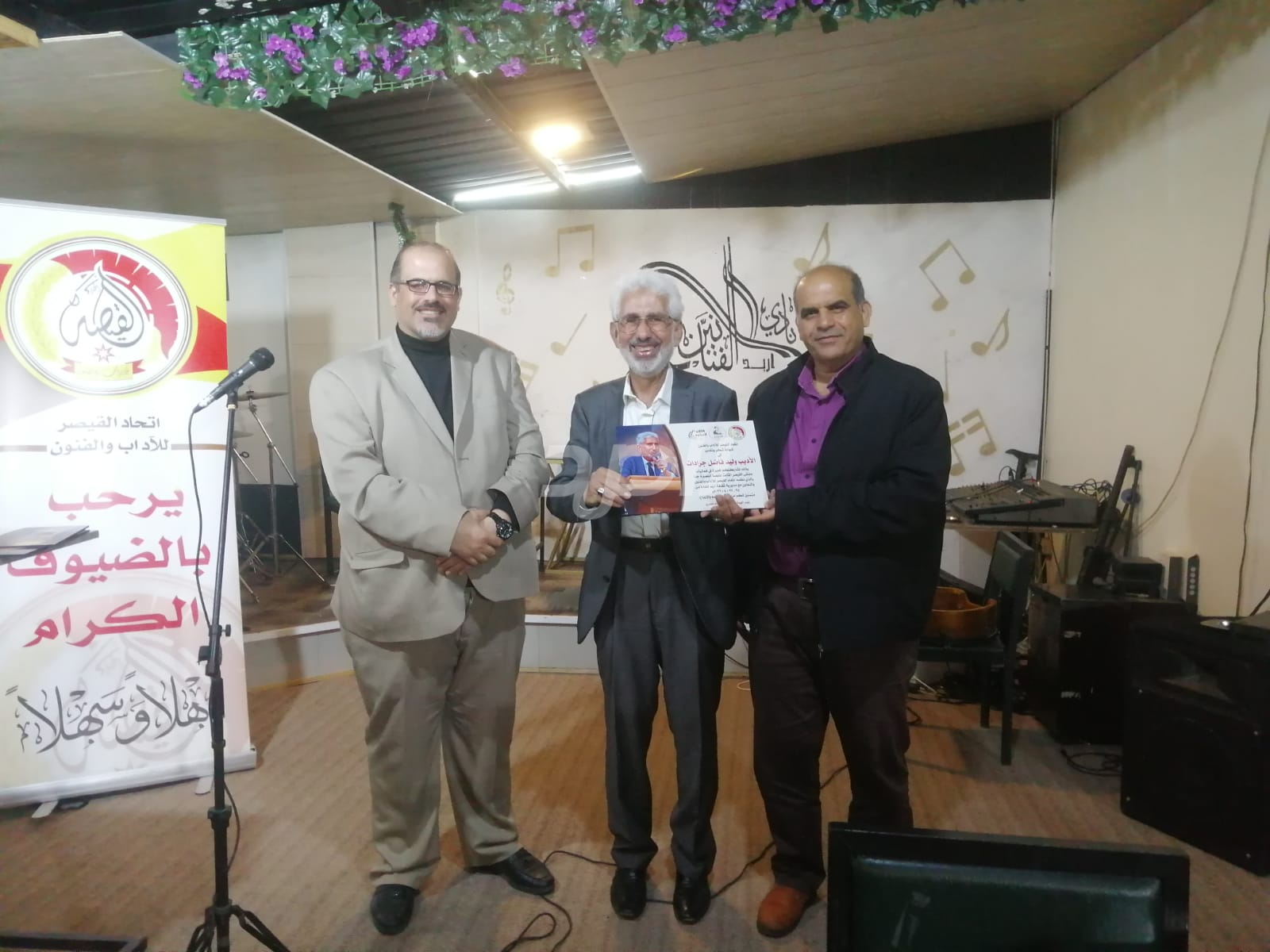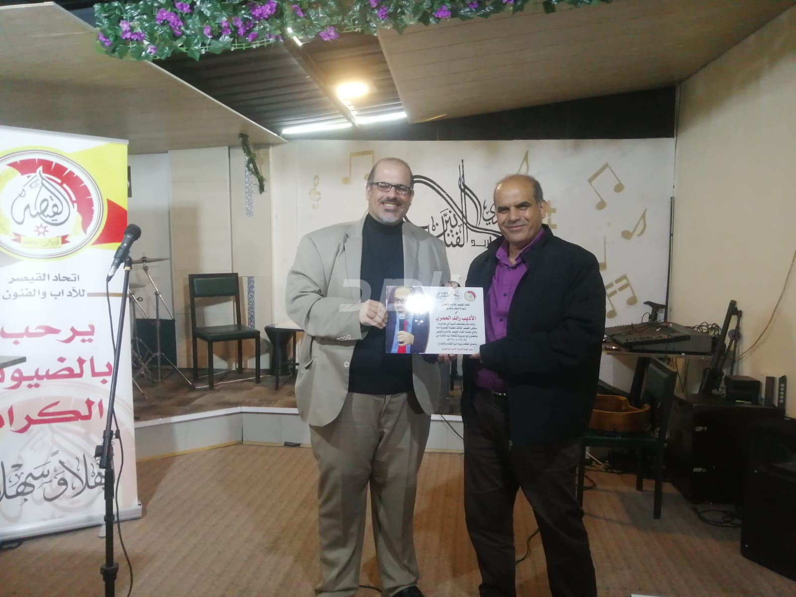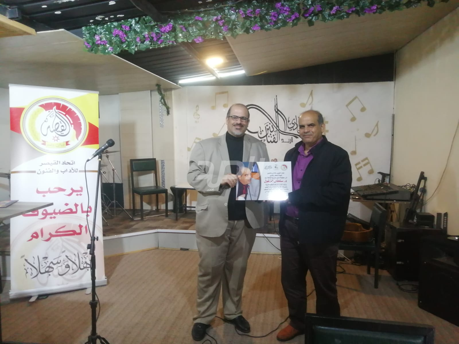 وفي نهاية الأمسية قدّم راعي الحفل د. سلطان الزغول يرافقه رئيس الاتحاد الأديب رائد العمري التكريمات للمشاركين..