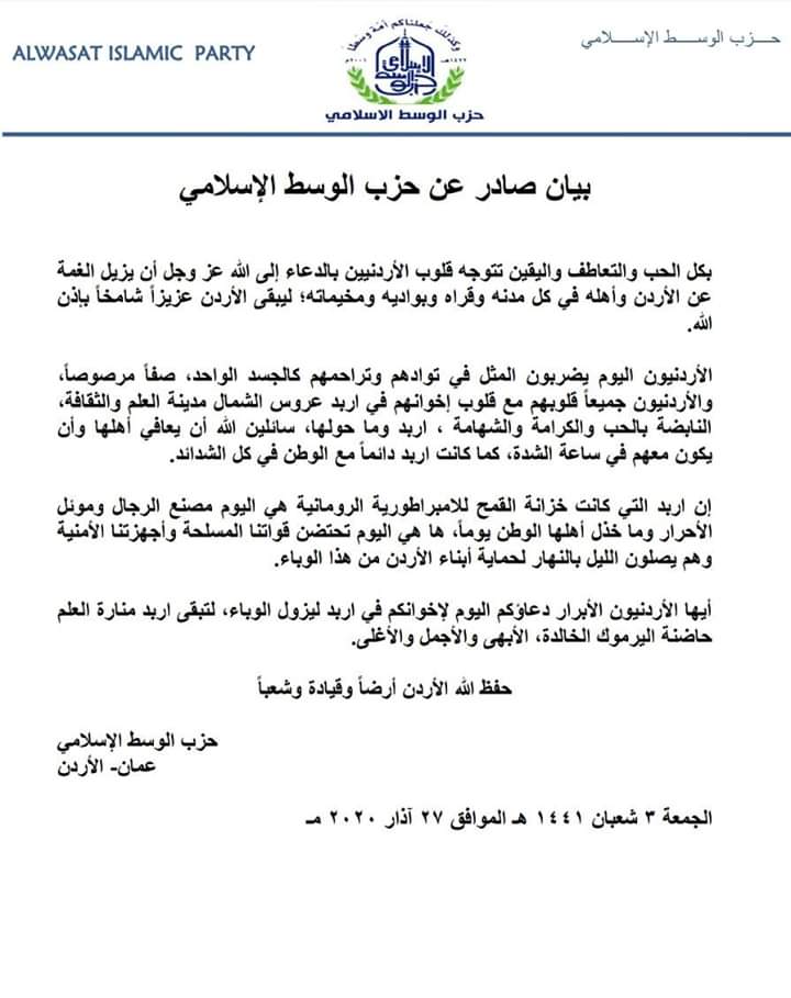 اعلان من الجيش الاردني2020-03-29 -